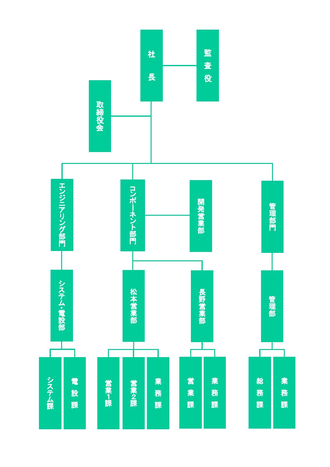 - 常務取締役 管理部門統括 越野 計一 取締役執行役員コンポーネント部門統括 百瀬 文也 取締役執行役員エンジニアリング部門統括 乳深 宗孝 取締役(非常勤) 松峯 信夫 監査役(非常勤) 高見澤 茂道